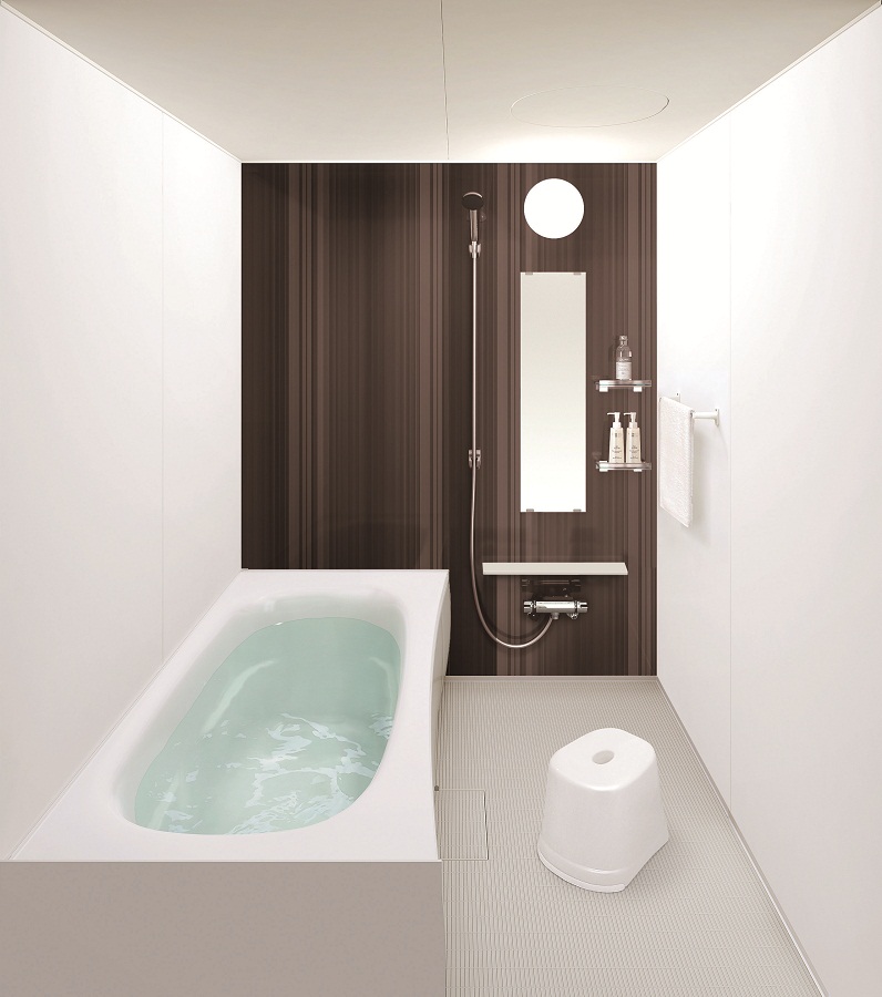 オプションのパネルも一面ありますのでシックな浴室となります。