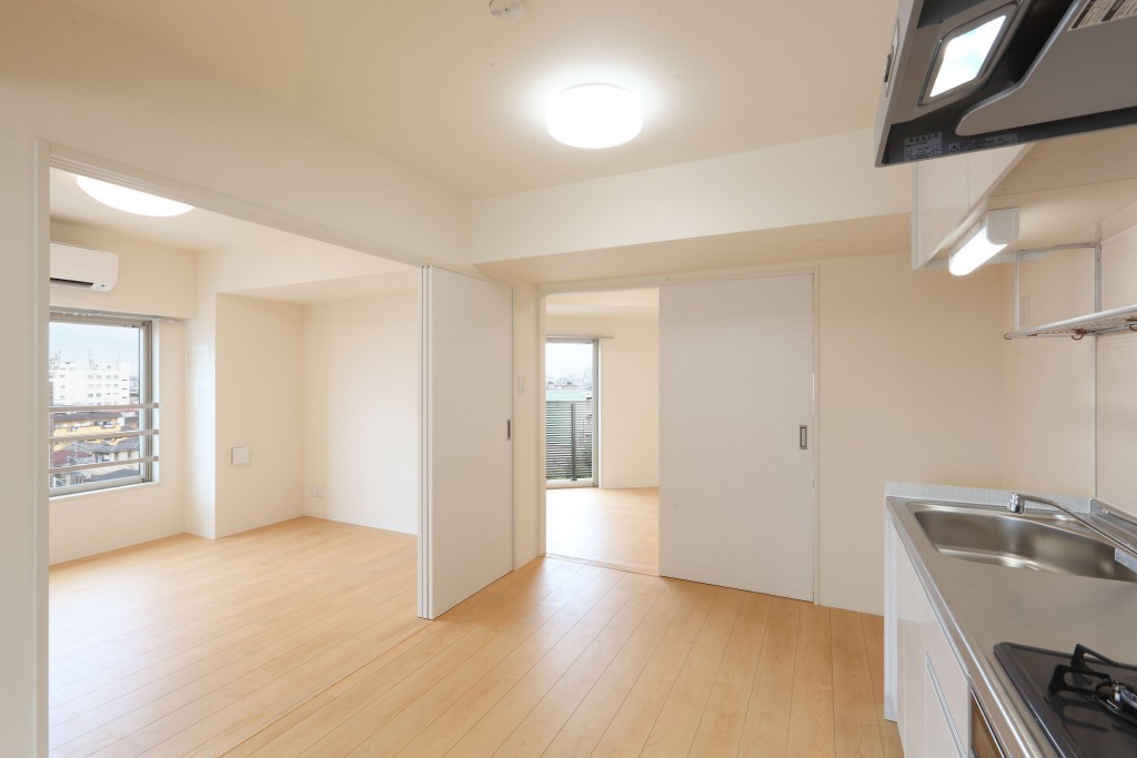 高層階は眺望が良い!角部屋の室内は明るく1LDK 2DKとしての利用も可能